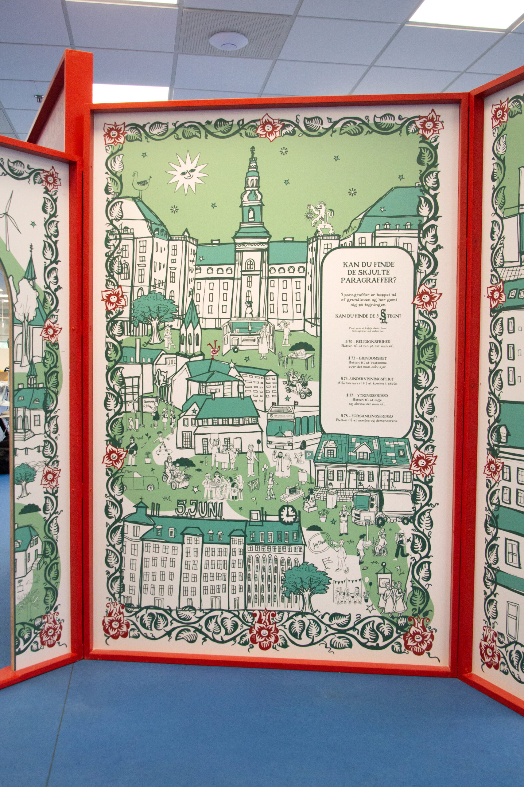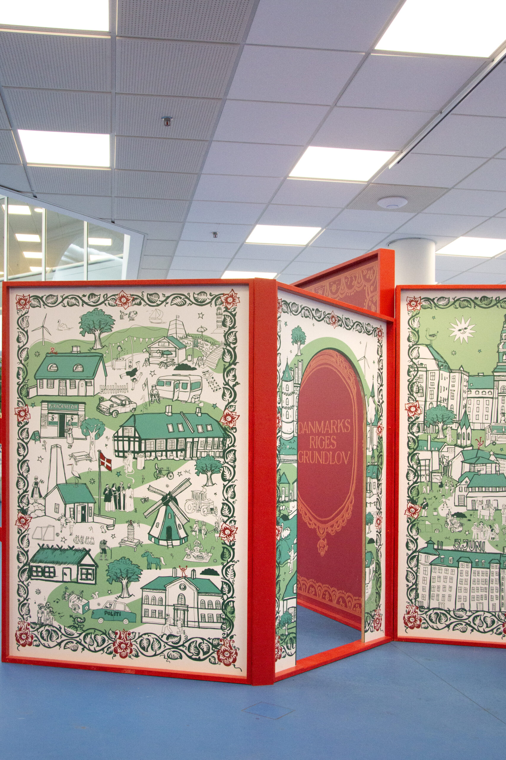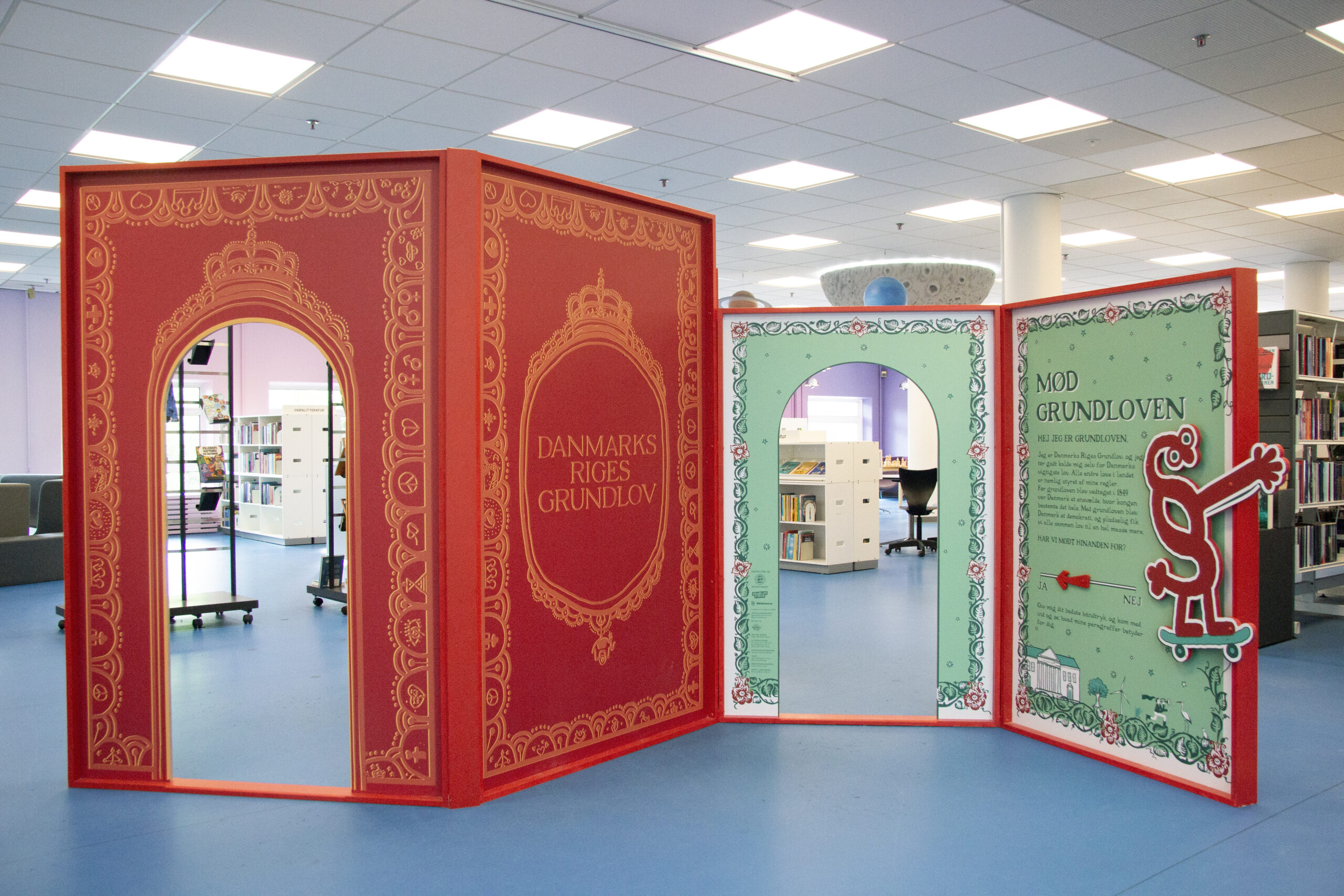 Her findes pressebilleder af udstillingen MØD Grundloven. En interaktiv udstilling udviklet i et samarbejde mellem GRUNDLOVSFESTEN, Folketinget og Bibliotekernes Temasamarbejde. Udstillingen giver publikum mulighed for at gå rundt mellem siderne i en over 2 meter høj Grundlov og blive klogere på, hvad den betyder i hverdagen, og hvilke rettigheder den giver os alle. Har du lyst til at vide mere, er du altid velkommen til at kontakte Sophie fra GRUNDLOVSFESTEN: s@grundlovesfesten.dk